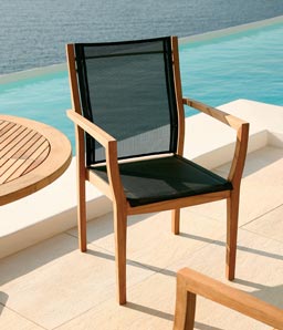 außerdem stapelbar; verfügbar mit Teakleisten auf Sitzfläche und