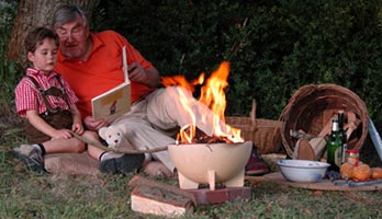 Welcher große oder kleine Mann spielt nicht gerne mit dem Feuer? Dafür haben wir das Richtige. Diese Feuerschalen werden von einer bekannten Keramikwerkstätte im Fränkischen hergestellt, die mit ihrer ursprünglichen Feuerschale einen wahren Trend nach Feuerstellen im Garten ausgelöst hat. Die spezielle Keramik hält höchsten Temperaturen stand und sie speichert die Wärme des Feuers über lange Zeit. So können Sie auch an kühlen Abenden das Flackern des Feuers genießen und sich an der wohligen Wärme erfreuen. Anders als bei sehr flachen Schalen wird bei diesen Feuerschalen bei Wind keine Asche aus der tiefen Schale herausgeblasen.